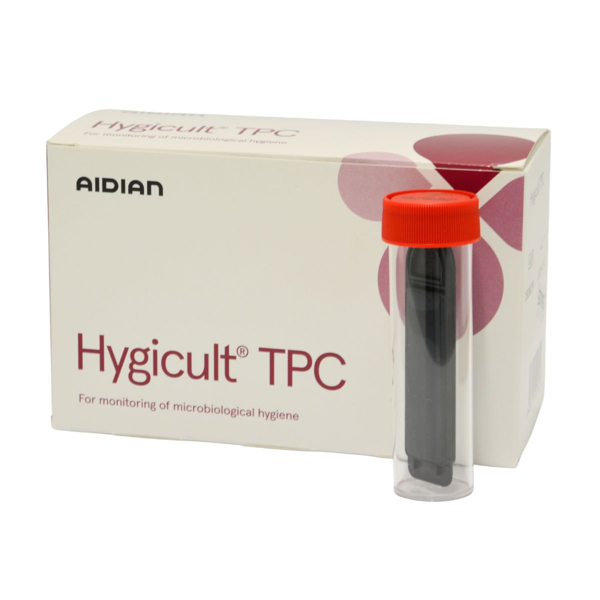 Hygicult-TPC on mikrobiologinen pintahygieniatesti, missä on elatusaine valmiina.